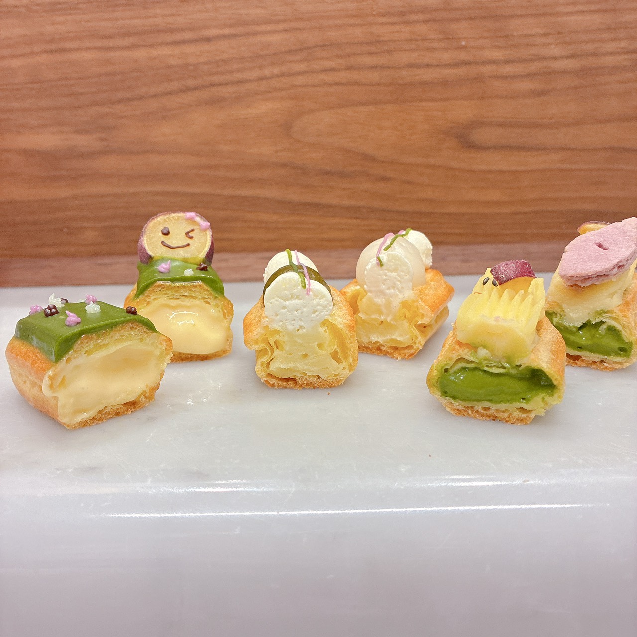 子どもたちは、実際に店舗を訪問し、見学、商品化のポイントや要望を取材した上で、数カ月かけて、アイデアを練り上げてくれました。オーナーパティシエが授業にお邪魔し、デザインの最終調整を行い、ようやく商品化にこぎつけました。商品のネーミング、POPにいたるまで、クラスで何度も検討を重ねて考えたものです。子どもたちの意図があちこちに含まれている、ここにしかないオリジナルの商品。ぜひお楽しみいただけたらと思います!